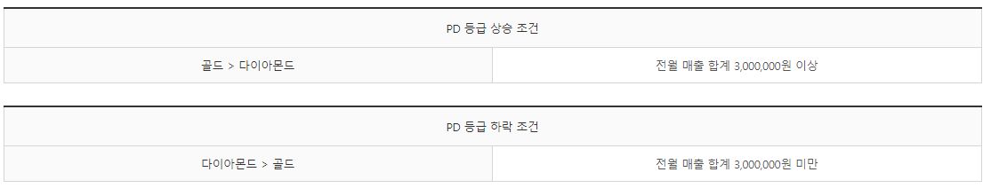 PD회원 등급은 골드와 다이아몬드가 있습니다.