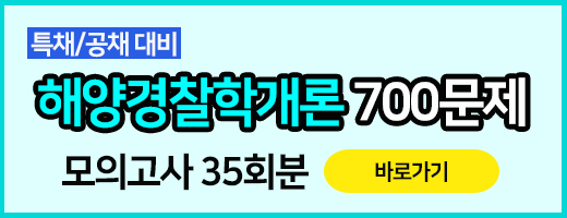 | 모의고사 종합 [23년 하반기 대비] ♤♠ 캠버스 해양경찰 <간부후보-항해> 종합 모의고사 모음 ♠♤ | 해양경찰학개론카테고리 더보기 | 2,000문항 | 28,000원 |