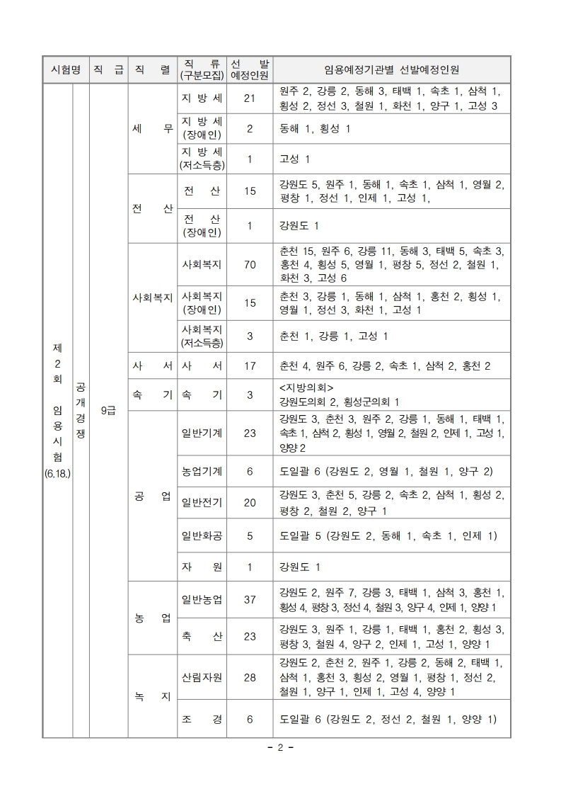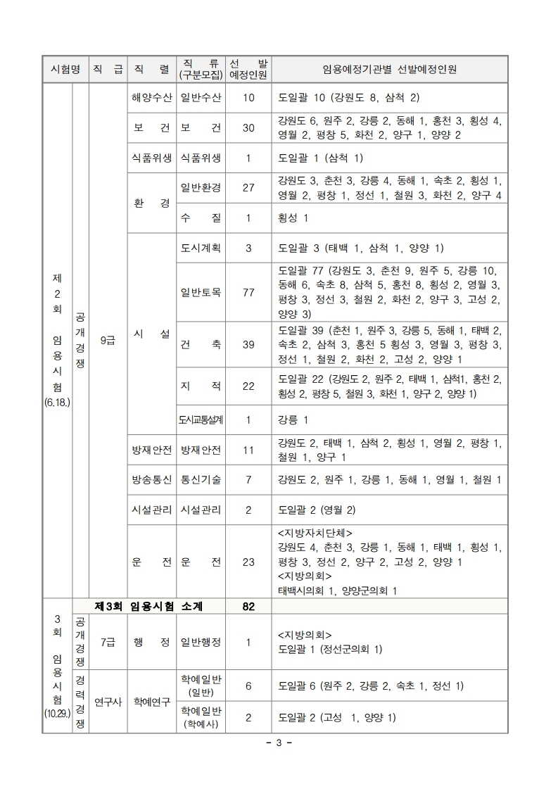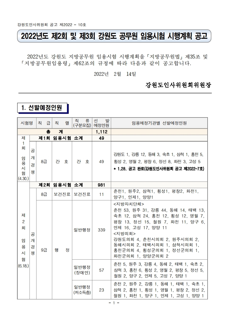 2022년도 제2회 및 제3회 강원도 공무원 임용시험 시행계획 공고