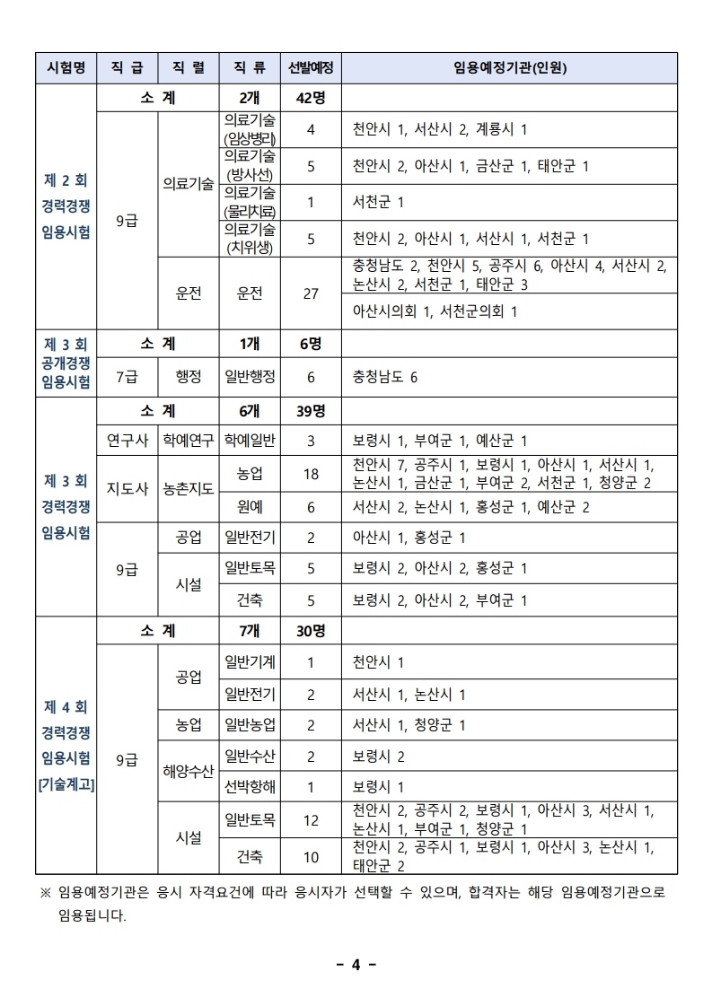 2022년도 충청남도 지방공무원 임용시험 시행계획 공고