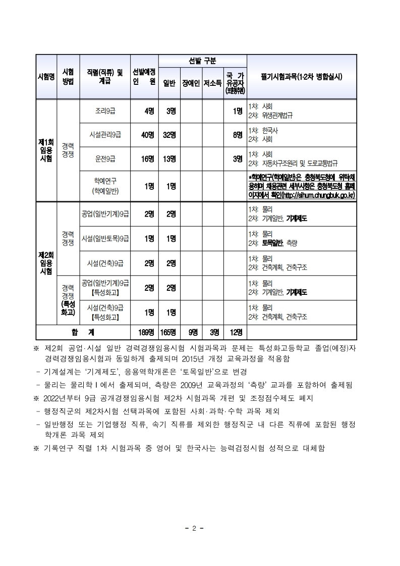 2022년도 충청북도교육청 지방공무원 임용시험 시행계획 공고