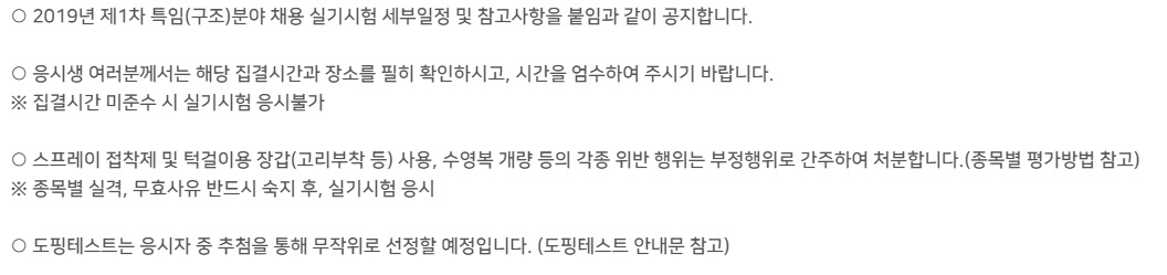 2019년 제1차 특임(구조)분야 채용 실기시험 세부일정 알림
