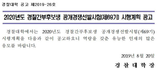 2020년도 제69기 경찰간부후보생 공개경쟁선발시험 시행계획 공고
