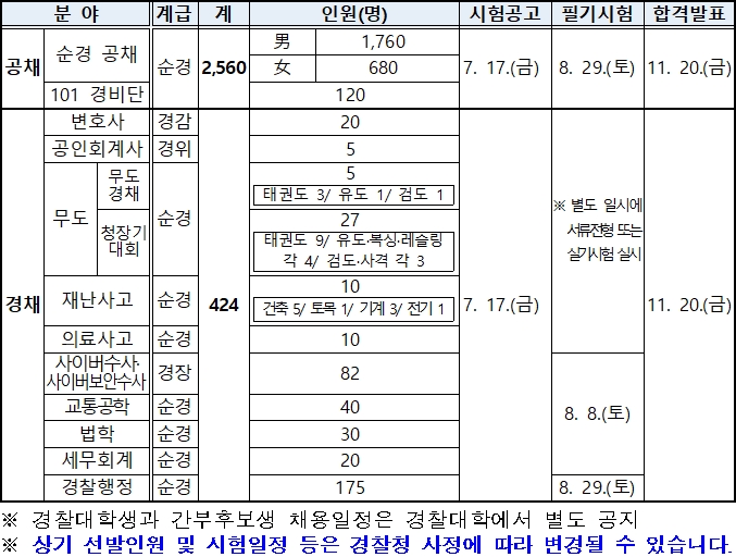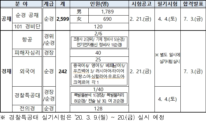 2020년 경찰공무원 채용시험 계획 (선발예정인원 및 일정)