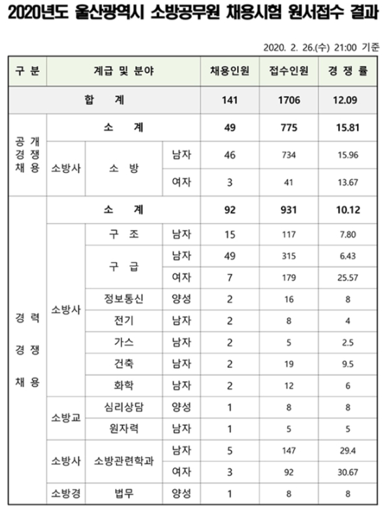 [2020] 소방공무원 울산광역시 경쟁률