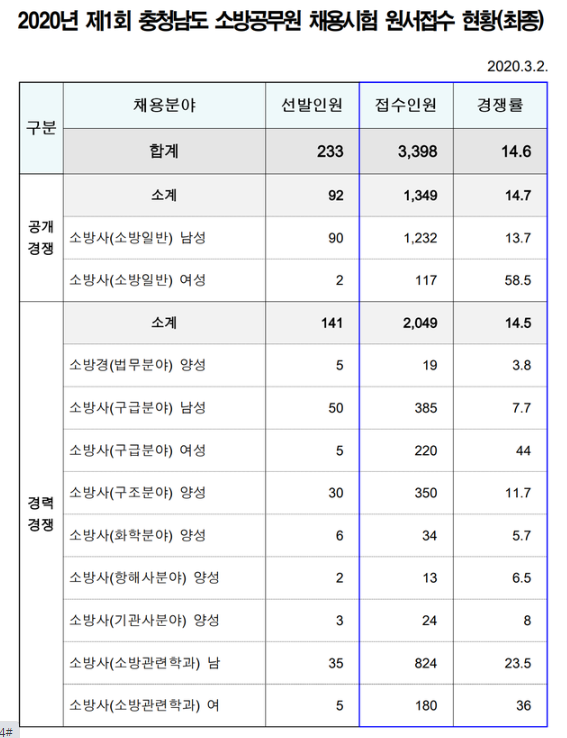 [2020] 소방공무원 충청남도 경쟁률