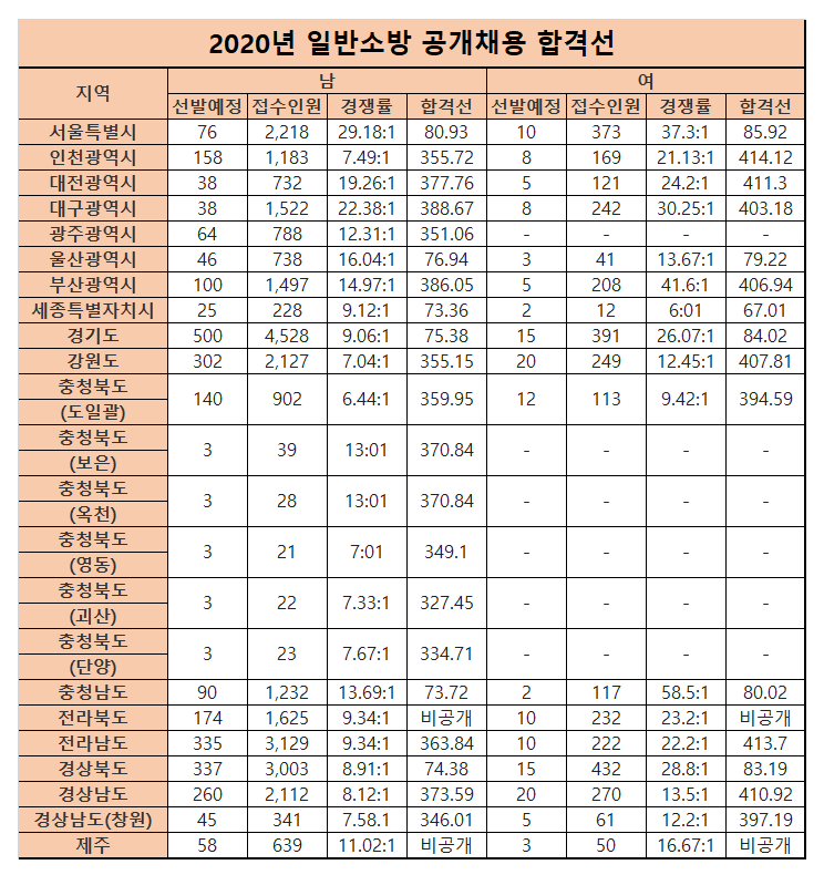 [2020] 소방공무원 합격선