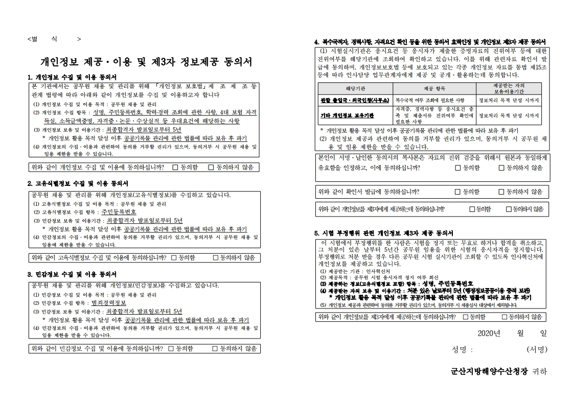 2020년 제1회 군산지방해양수산청 등대관리직 공무원 경력경쟁채용시험 시행계획 공고
