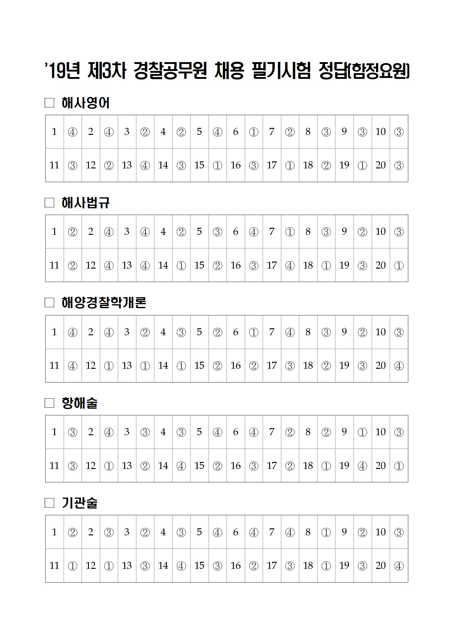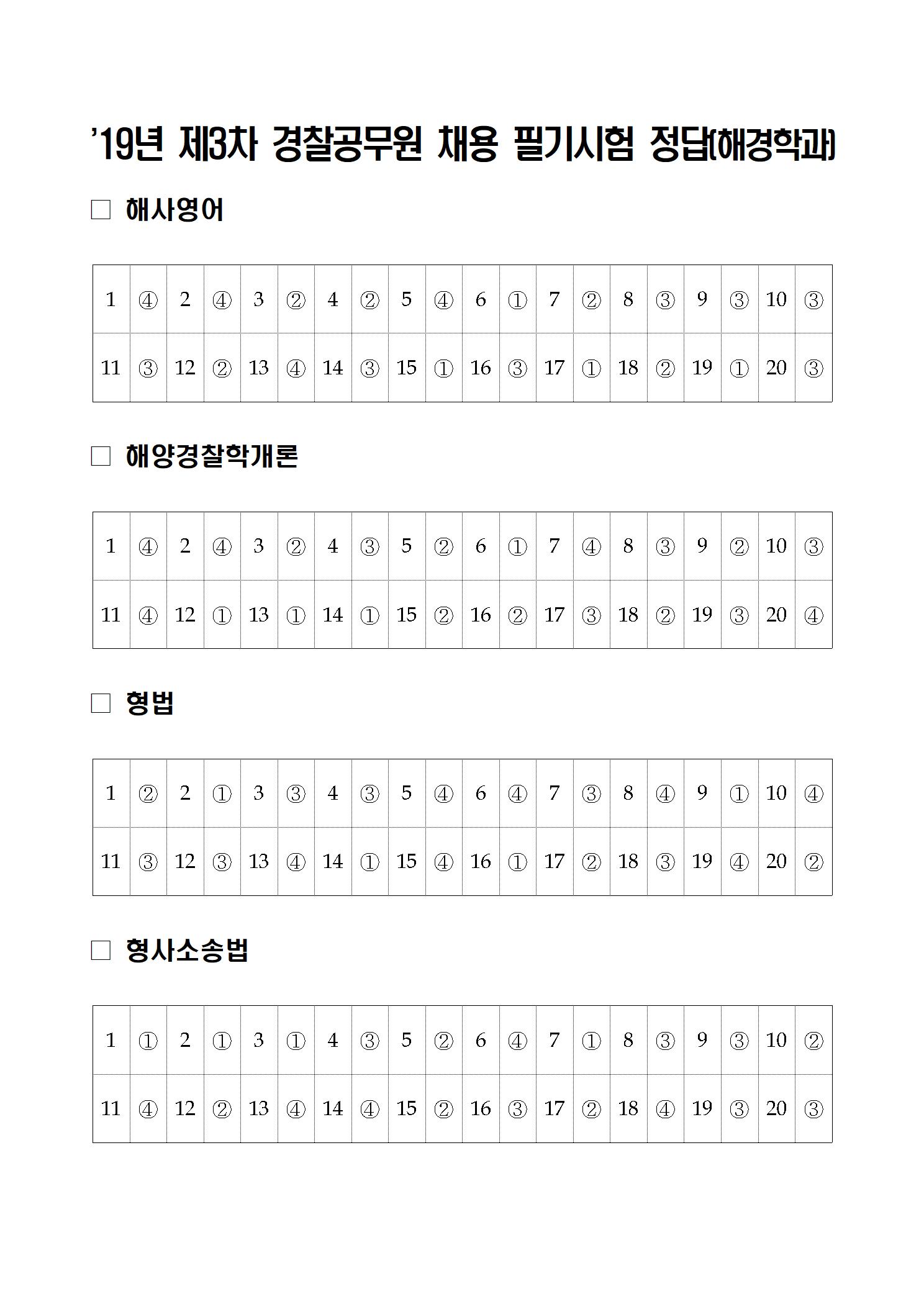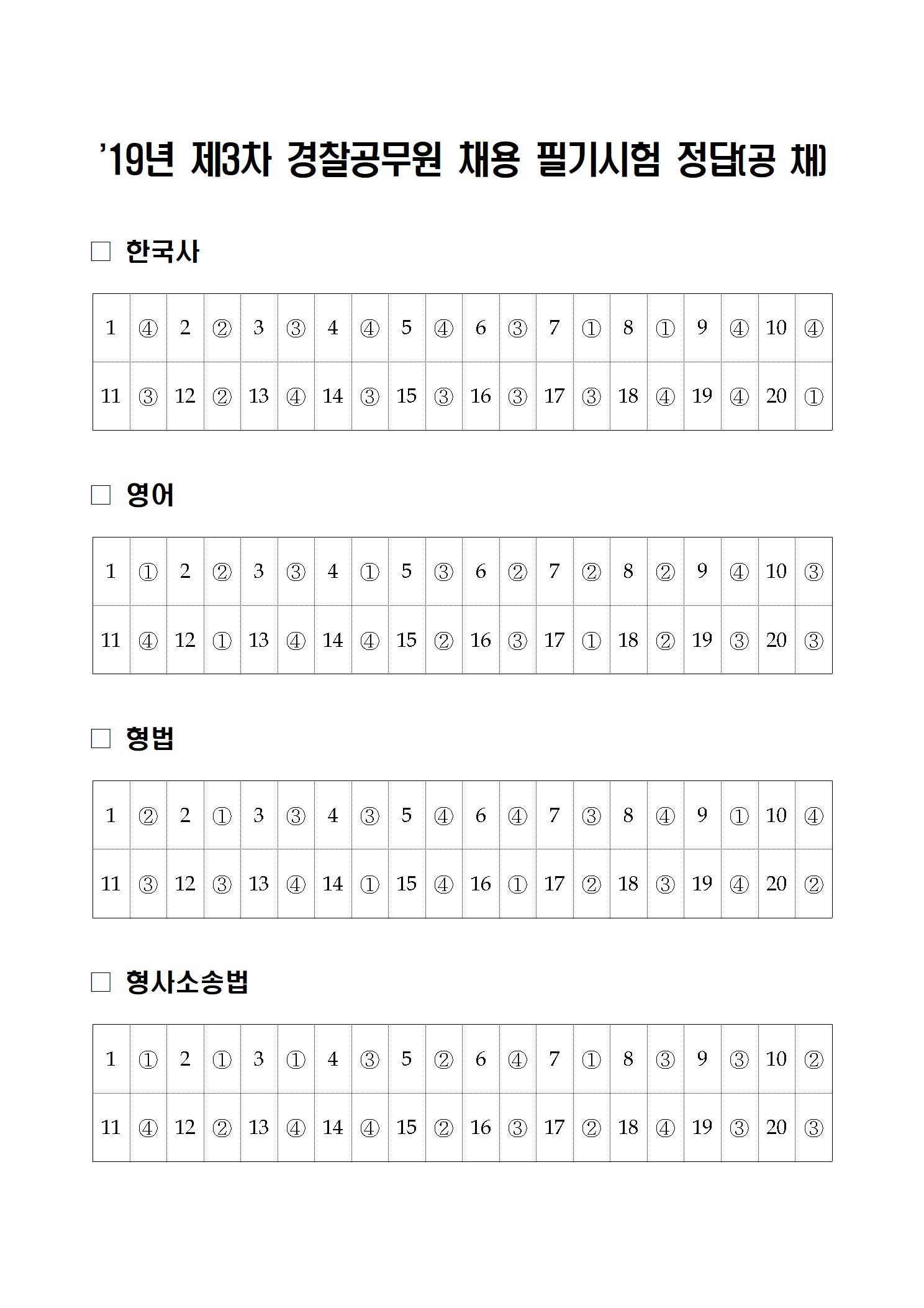 '19년 제3차 경찰공무원 및 '20년 간부후보생 선발 필기시험 가답안을 붙임과 같이 공지합니다.