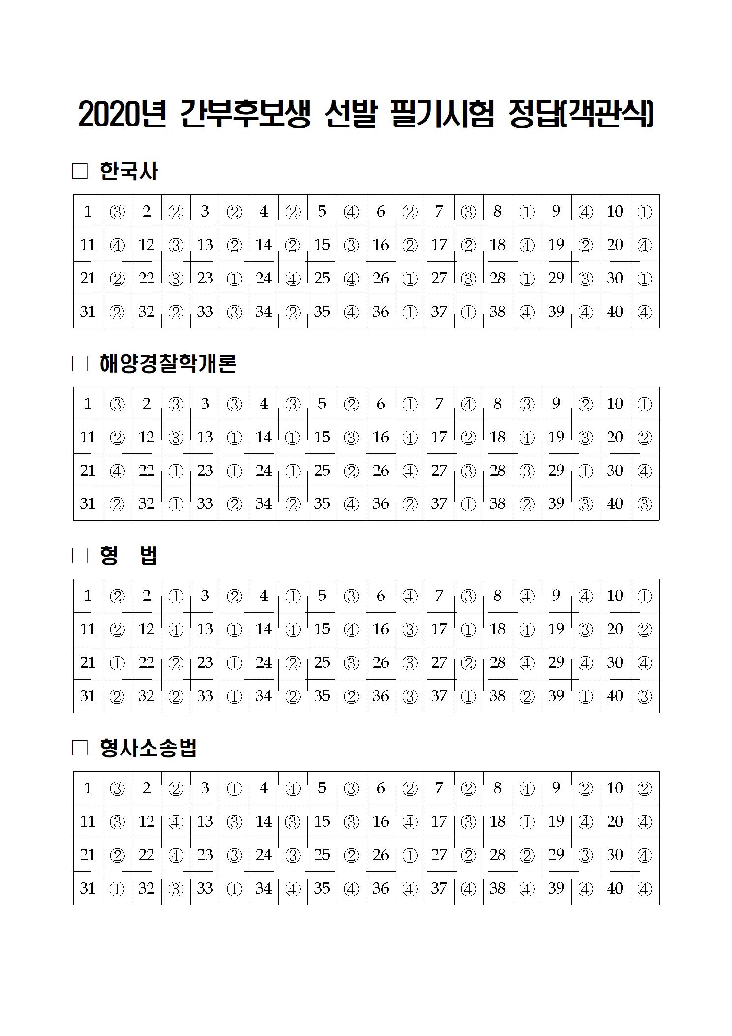 '19년 제3차 경찰공무원 채용 및 '20년 간부후보생 선발 필기시험 확정답안 알림 작성자 : 캠버스 해양경찰 작성일자 : 2019-10-08 08:51:20조회수 1218 |