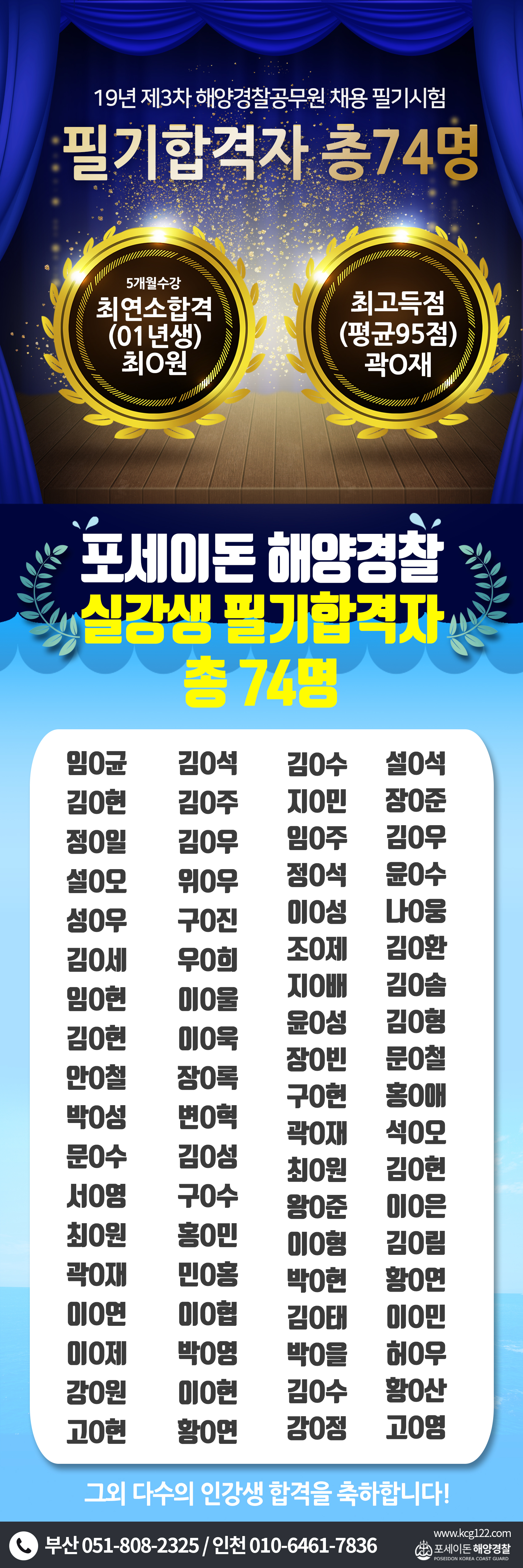 2019 3차 해양경찰 필기시험 합격자 총 74명