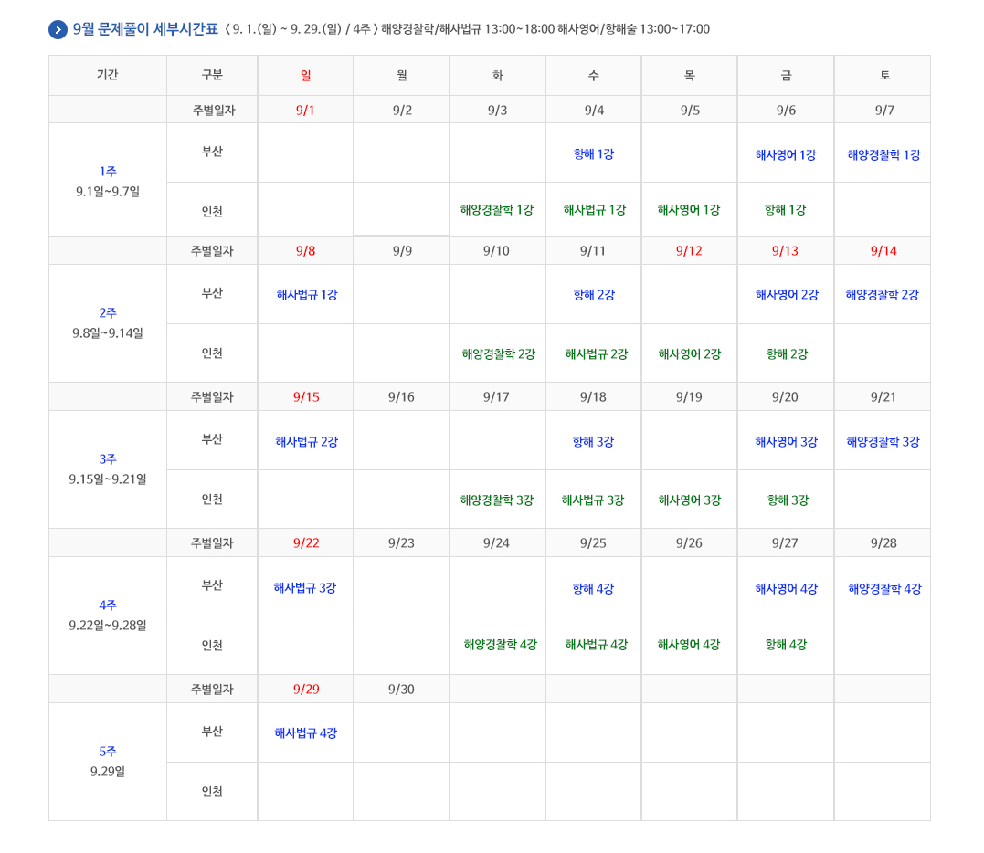 [부산/인천] 9월 문제풀이 세부일정표_수정