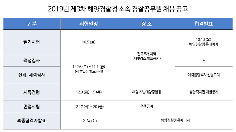 2019년 제3차 해양경찰청 소속 경찰공무원 채용공고