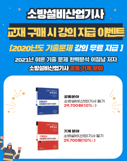 [EVENT] 소방설비산업기사 교재 구매 시 강의지급 소문내기 이벤트 작성자 : 소준사 작성일자 : 2021-03-24 10:29:37조회수 15533 |