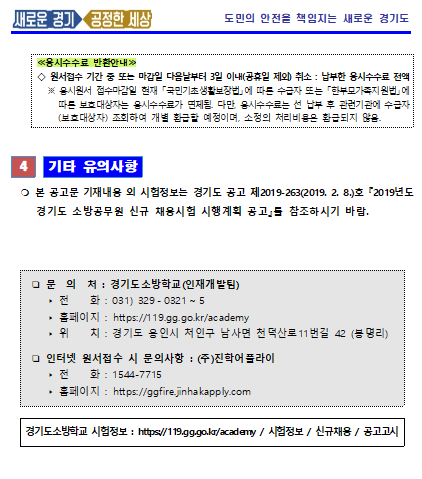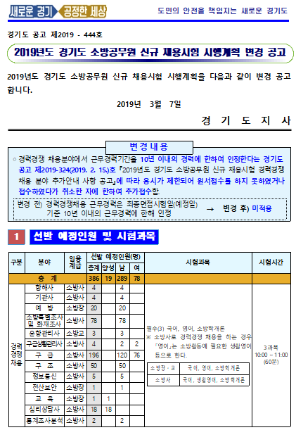 2019년도 경기도 소방공무원 신규채용시험 시행계획 변경공고
