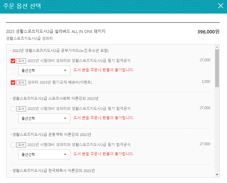 신청방법 ※ 아래 이미지와 같이 2022년 시험대비 교재와 이벤트 항목 체크하여 결제
