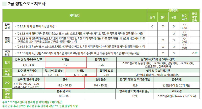 2022년 스포츠지도사 시험일정