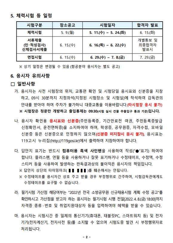 ★ 2022년 서울 소방공무원 신규채용 필기시험 일정 등 공고