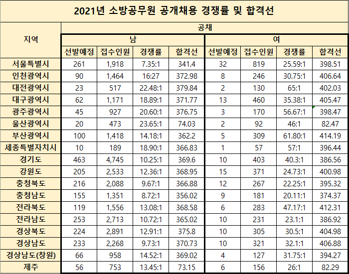 [2021] 소방공무원 공채 경쟁률 및 합격선