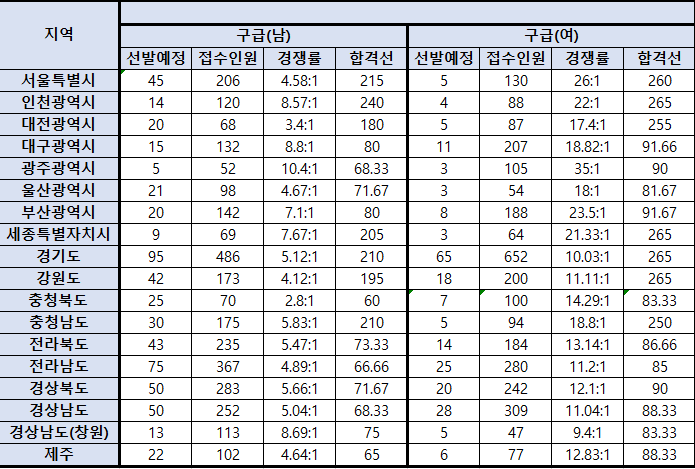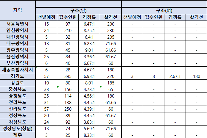 [2021] 소방공무원 경채,특채 경쟁률 및 합격선